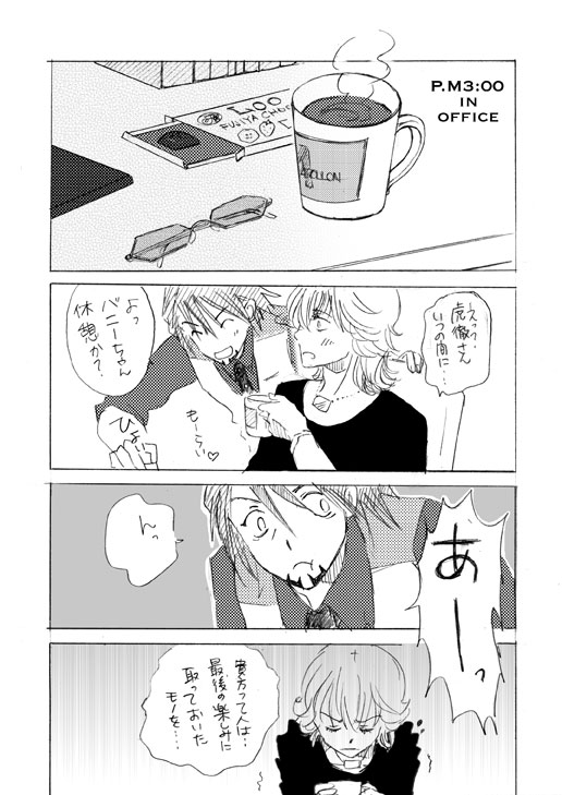 「くっつかないで下さい」「はいはい暴れない」つまらない賭けに乗り、罰ゲームで虎徹に膝抱っこされる羽目になった。後ろから抱きつかれながらも必死に抵抗を続けていると、首筋に吐息を感じた。あっと思った瞬間甘鈍い痛みが全身を駆け巡る。「わりぃ、つい」「っ…貴様反撃かぁぁ!」「えぇーっ!」